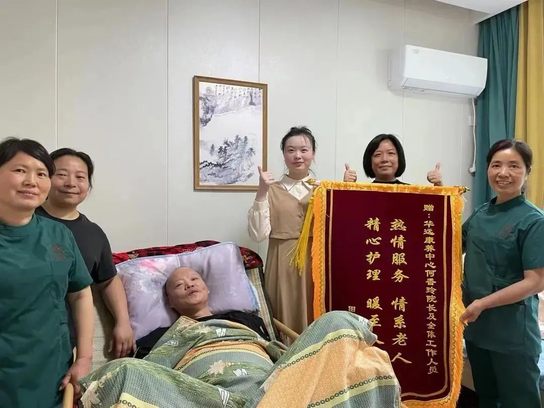 看到父親開(kāi)朗的笑顏、從消瘦到有肉肉的身體、逐漸穩(wěn)定的血糖和血壓,作為女兒的小田的也慢慢覺(jué)得放心和慶幸。放心的把父親放在華遠(yuǎn)康養(yǎng)中心照料,慶幸自己當(dāng)初的選擇沒(méi)有錯(cuò)。于是在天朗氣清的四月,她帶著一面紅彤彤的錦旗敲響了院長(zhǎng)辦公室的門(mén)。