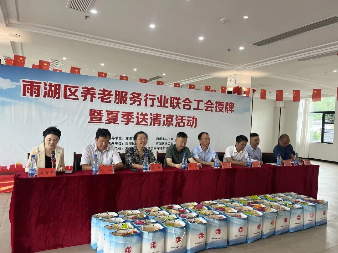 市總工會(huì)黨組成員、副主席羅軍為此次雨湖區(qū)養(yǎng)老服務(wù)行業(yè)聯(lián)合工會(huì)授牌。