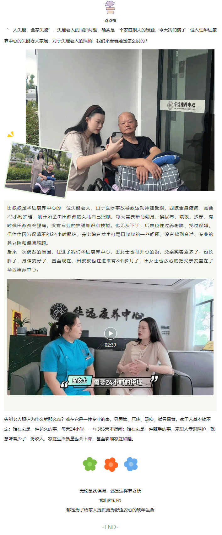 華遠康養(yǎng)|失能老人照護難題:保姆還是養(yǎng)老院?