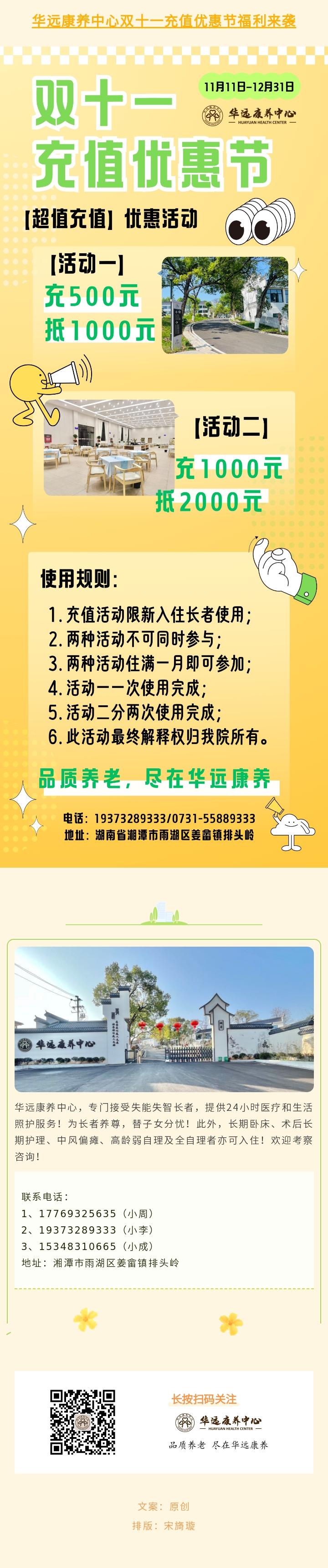 華遠(yuǎn)康養(yǎng)中心雙十一充值優(yōu)惠節(jié)福利來(lái)襲