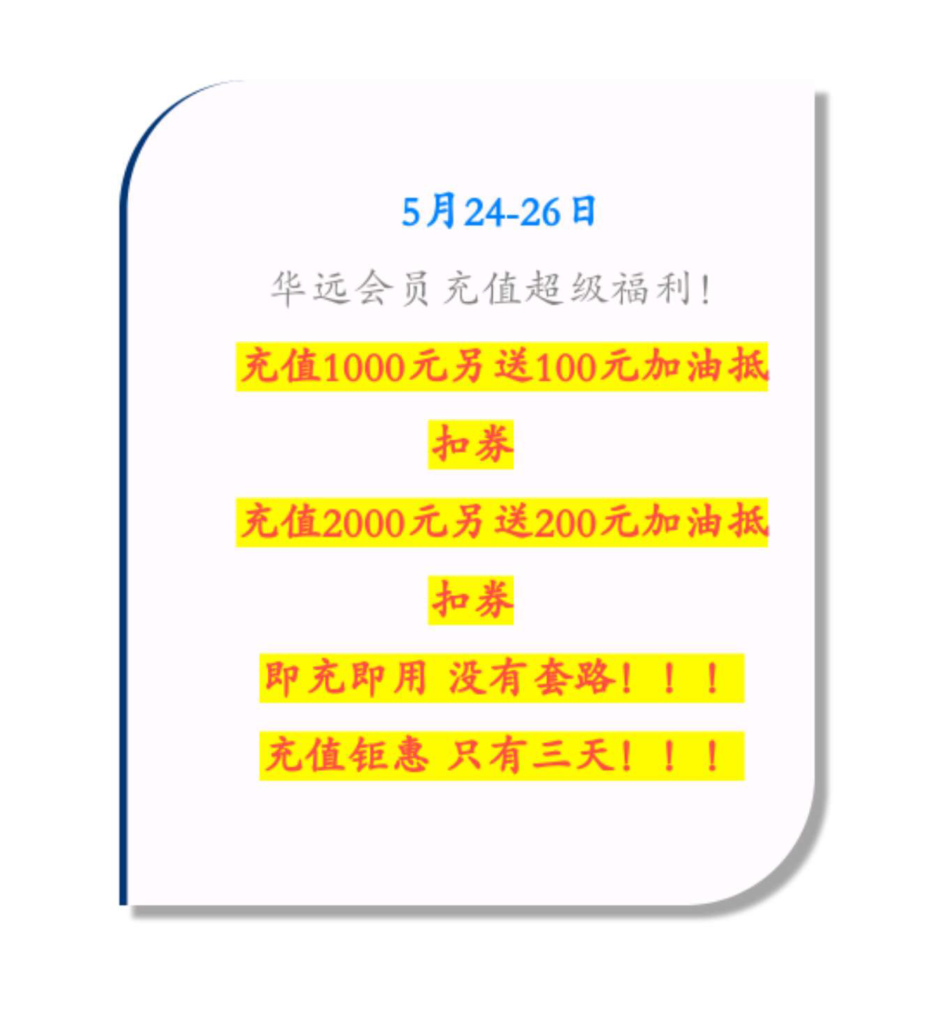 新站開業(yè)鉅惠僅限3天!5月24-26日充值1000送100,會員日最高優(yōu)惠1元/升!衡陽車主福利最多?。?!